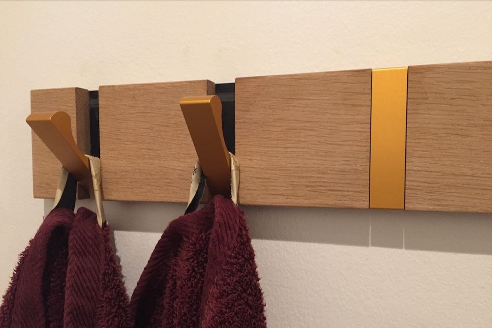 Special KNAX Edition. Kombination af olieret egetræ og messing knage i aluminium.