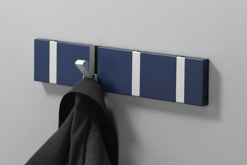 D'une couleur riche et royale, les portemanteaux saphir de KNAX ajoutent une note de sophistication à n'importe quel espace. Accrochez manteaux, clés et sacs à main sur les crochets rabattables solides et durables pour garder votre chambre ou votre couloir propre et ordonné. Disponible avec 2 à 10 patères rétractables en noir ou en aluminium (argent/gris).